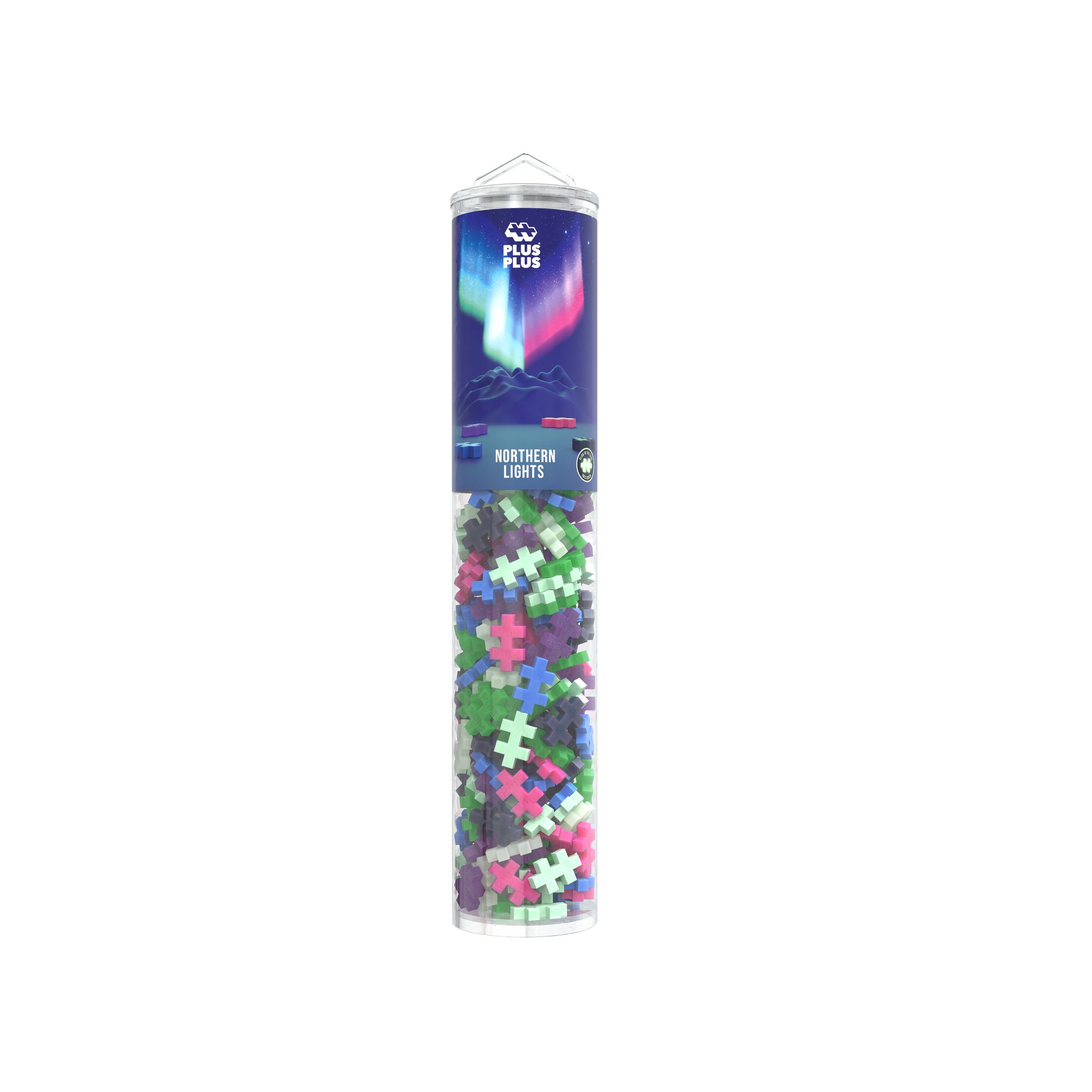 Bring the magic of the aurora borealis to your builds with the Northern Lights Colour Mix from Plus-Plus. This reusable tube includes 240 pieces in a stunning palette: Flamingo, Dark Blue, Cornflower Blue, Neon Green, Mint, Glitter Purple, and Glow-in-the-Dark.
